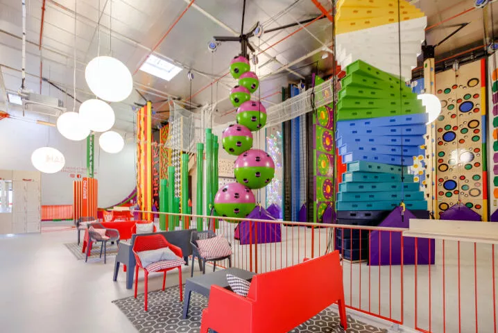 Hapik Chambourcy invite familles et groupes à se challenger sur ses multiples murs thématiques, défis verticaux et parcours acrobranches.