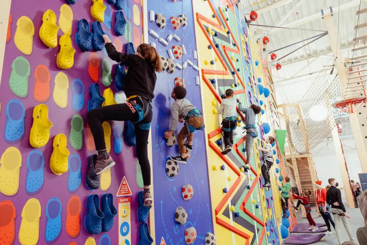 Bienvenue chez Hapik Noyelles Godault, grimpez nos murs colorés et survolez la plus grande tyrolienne intérieure chez Hapik pour un moment fun et mémorable !